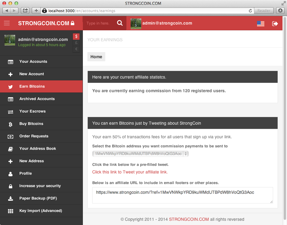 Easy take a Bitcoin address you own and create your Brand affiliate link. e.g.