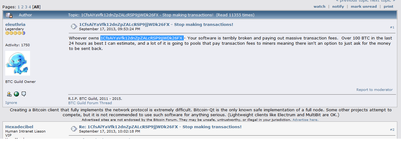 BitcoinTalk post due to large fees.