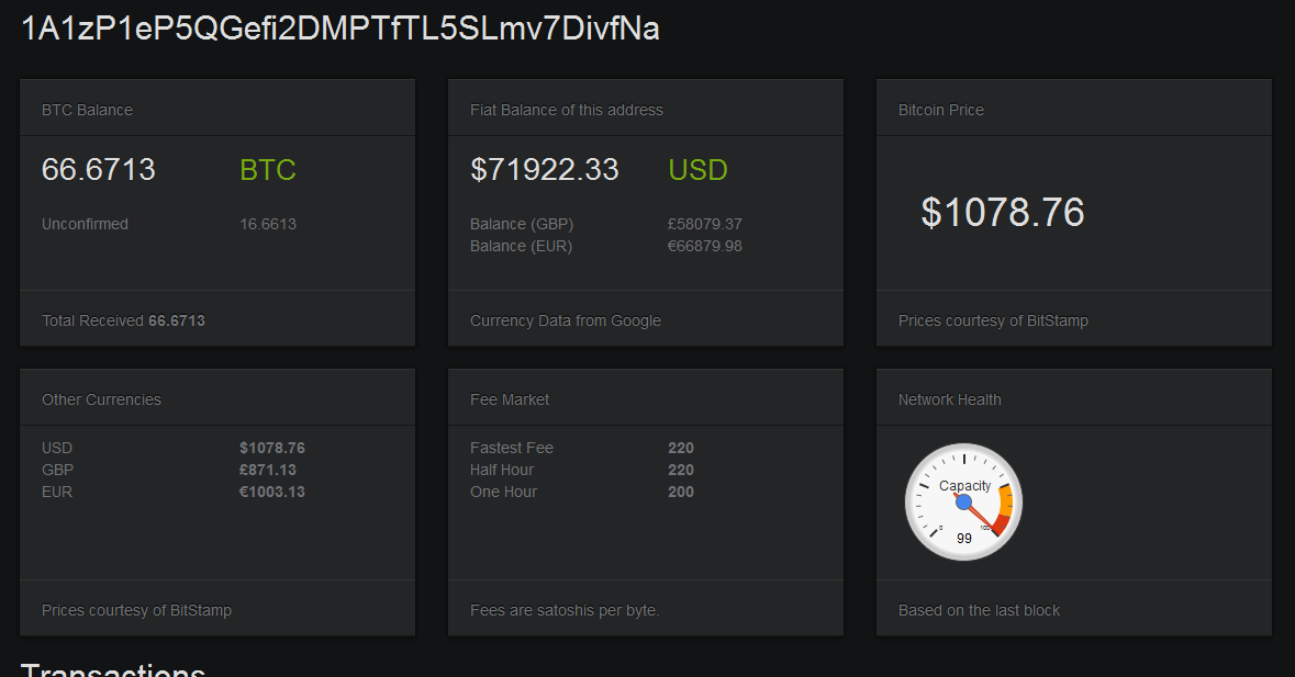 Address 1A1zP1eP5QGefi2DMPTfTL5SLmv7DivfNa is the recipient of the first ever Bitcoin block mining reward of 50 Bitcoins.