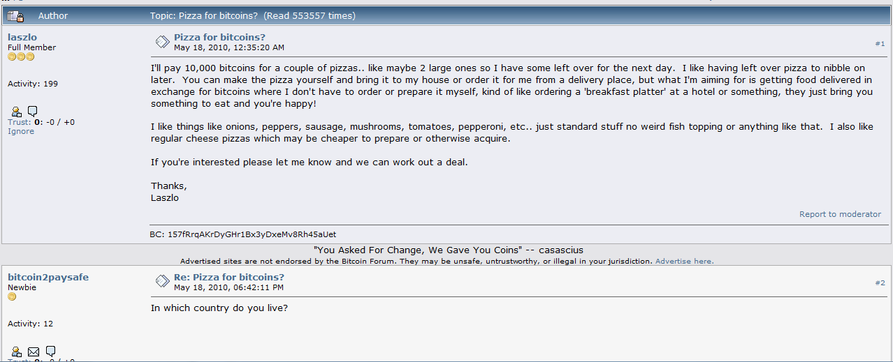 10,000 BTC for a Pizza